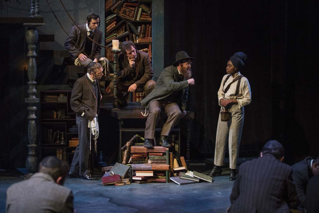 Ensemble: Alec Deske (Yeshiva Student and Others), Aly Easton (Poor Woman With Baby and Others) , TJ Harris (1st Rabbinical Judge and Others), Eamon Hurd (1st Chasid and Others), William Kanter (Osher and Others), Jesi Mullins (Very Old Poor Woman and Others) , Lauren Skelton (A Tall Pale Women and Others), Jeffery Todd Parrott (2nd Rabbinical Judge and Others), and Antonio Rodriguez (Nachman and Others).