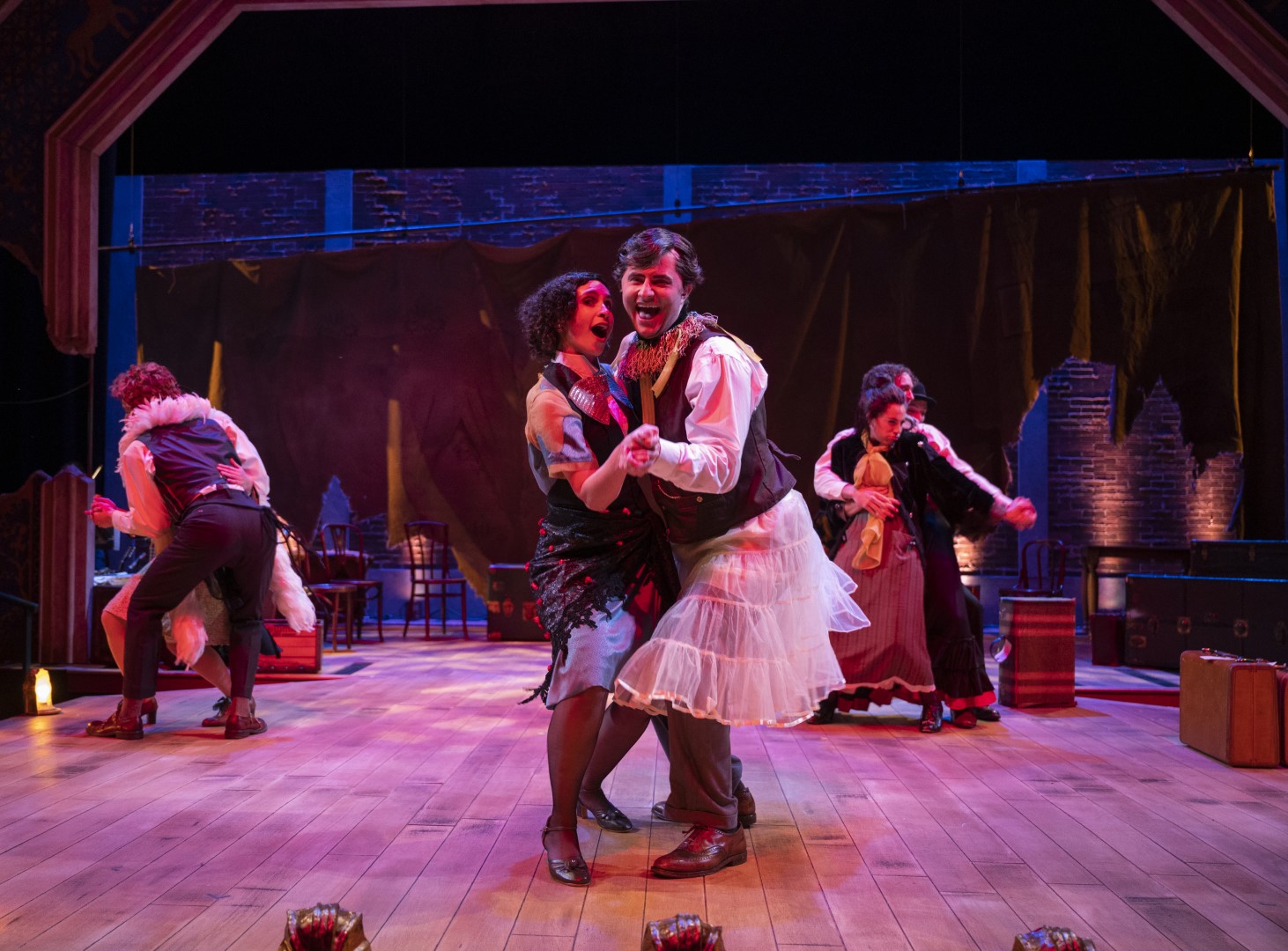 The production team includes choreography by Lin Batsheva Kahn, music direction by Mark Elliott, intimacy & violence direction by Claire Yearman, voice and dialect coaching by Phil Timberlake, scenic design by Abby West, costume design by Avery Lauer, lighting design by Aria Morris, projection design by Grant Palmer, sound design by Christopher Cook and Forrest Gregor, technical direction by Ollie Gillespie, dramaturgy by Liz Bazzoli, Leah Geisler, and Emily Townley, and stage management by Joshua Clewis.