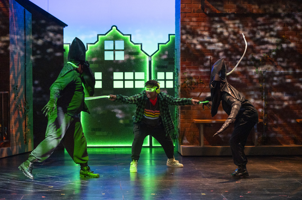 The production team includes fight direction by Gaby Labotka, scenic design by Devin Walls, costume design by Juno Pacheco, wig and makeup design by Megan E. Pirtle, lighting design by Zachary C. Fonder, sound design by Florence Borowski, an original score composed by Anaïs Ortiz and Florence Borowski, projection design by Andres Fiz, technical direction by Sam Lancaster, dramaturgy by Laura Rodriguez Sierra and Artemis Westover, production stage management by Gabriella Suarez, and stage management by Alivia Arizaga.