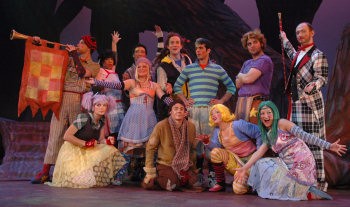 The first Cunningham Commission for Youth Theatre, THE KINGDOM OF GRIMM is an inspiring new musical for American children's theatre about the magic of storytelling. One winter's day, young Hans stumbles across a key in the woods. It unlocks an enchanted chest that holds the imprisoned Gerhardt the Great and his troupe of traveling players. To show their thanks, the players perform three fairy tales for Hans: The Golden Goose, The Three Huntsmen and The Four Skillful Brothers. Underscored by songs ranging in style from ballads to blues, Hans learns about generosity, loyalty and hard work.